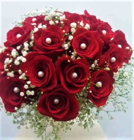 Buquê de Noiva Rosas Colômbia com pérolas.